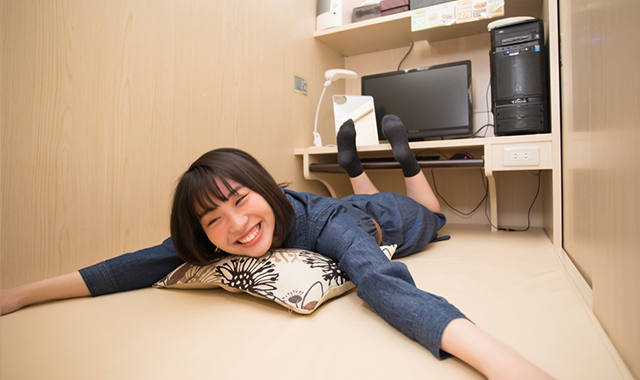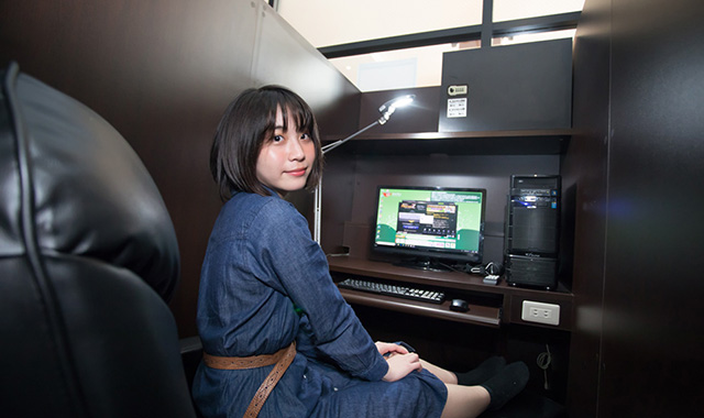 ネットカフェブースでは1日使える1DAYパックをご用意。自身の空間を大切にしたい方は鍵付き個室も完備しています。